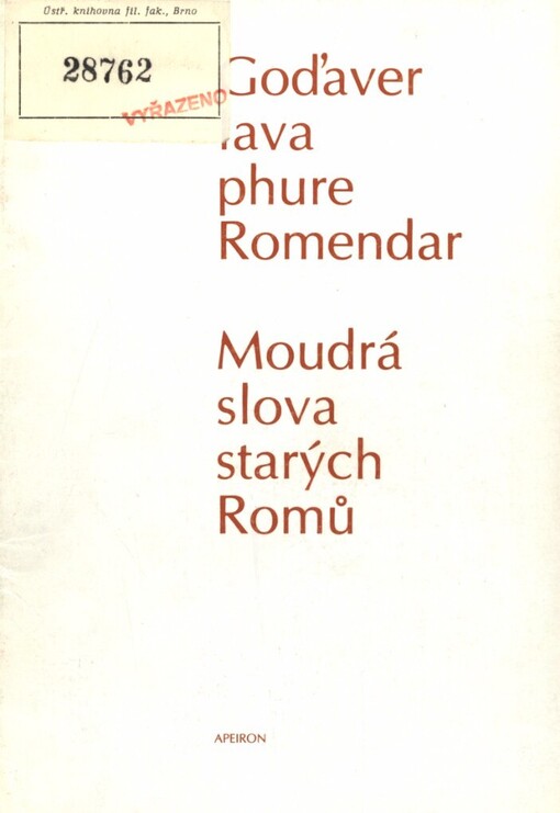 God'aver lava phure Romendar = Moudrá slova starých Romů